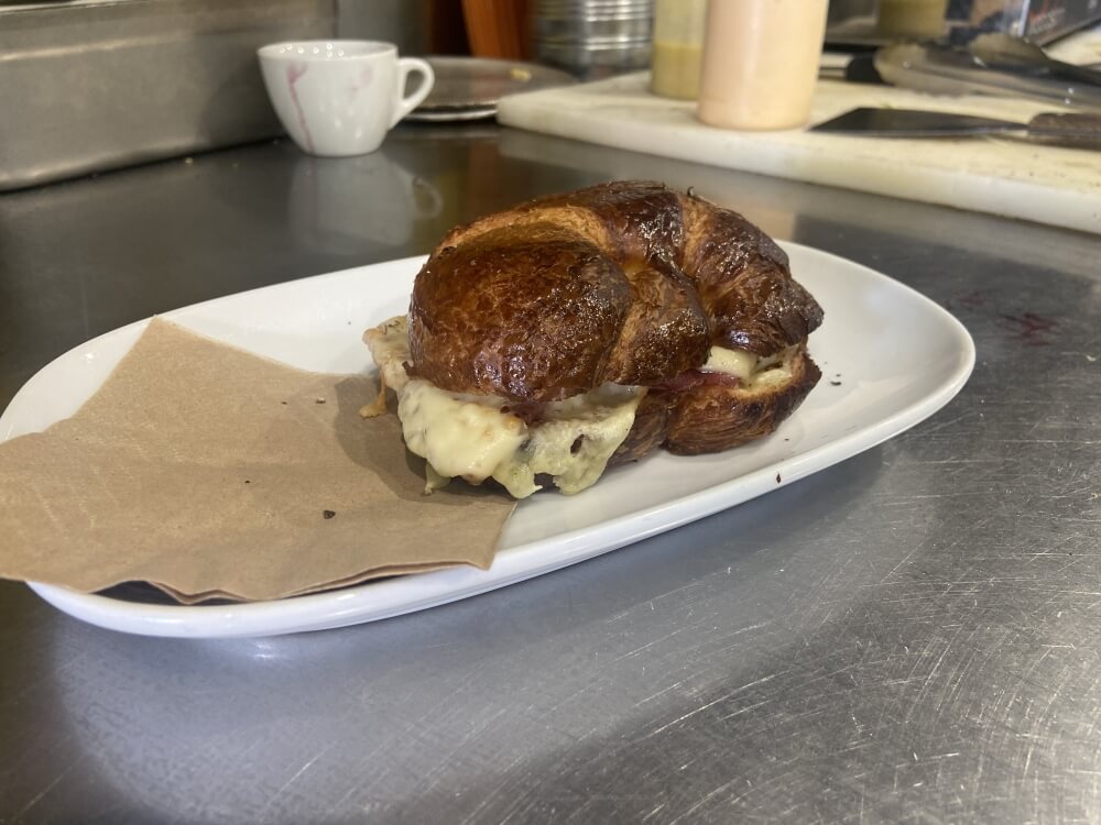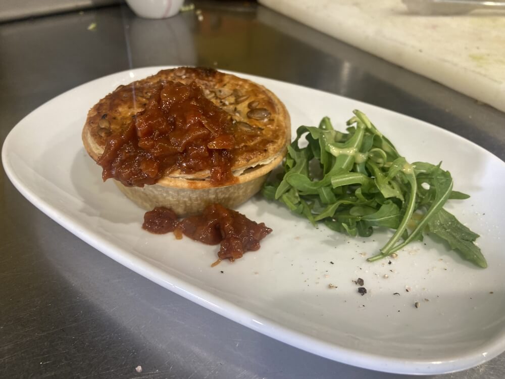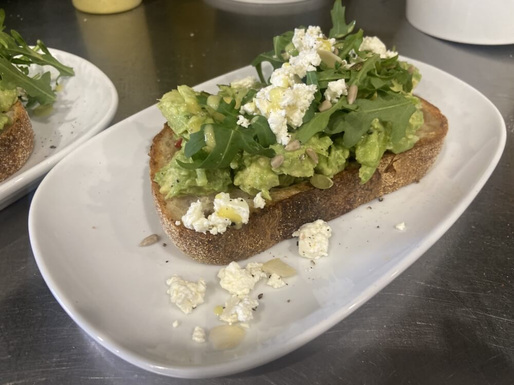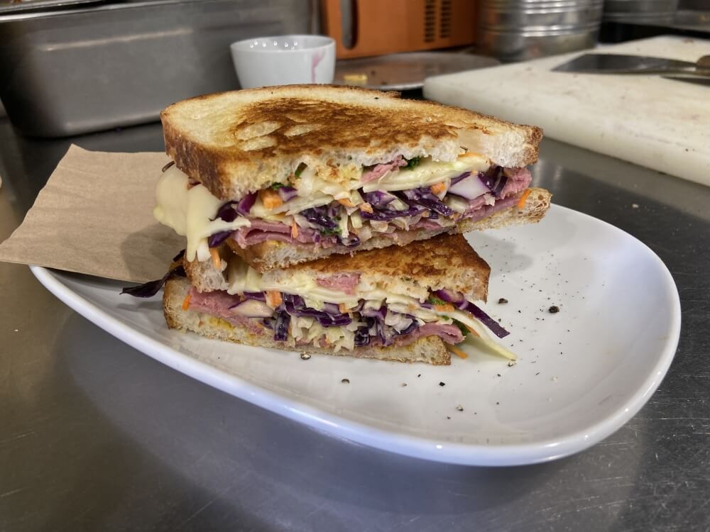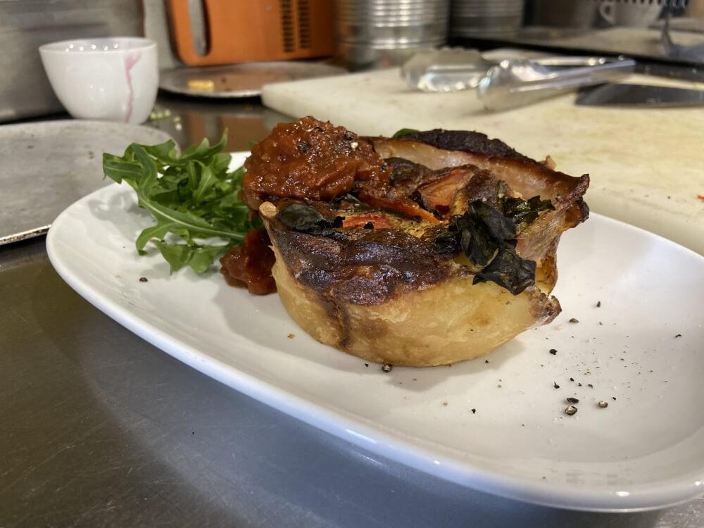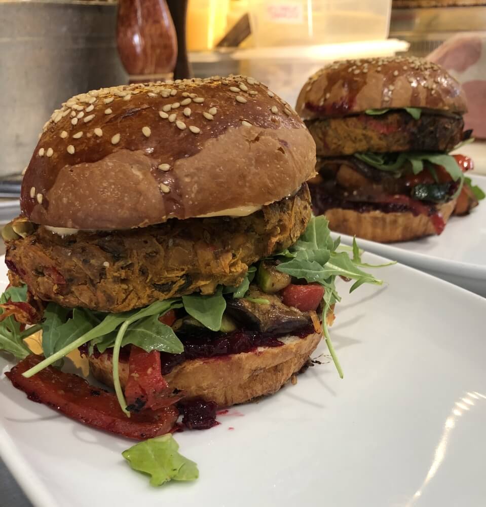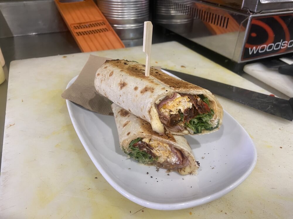 Ham, cheese, tomato w sweet mustard pickle Chicken, slaw, pesto w Swiss cheese Roast veg w baby spinach & Swiss cheese